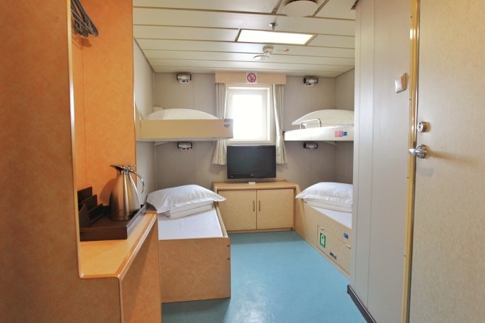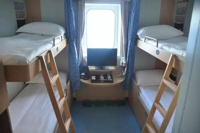 房型五:内舱四人间 ▲ 房间设施:独卫 | 电视机 |衣柜 | 茶几 | 行李架 ▲ 可入住人数:4人/间