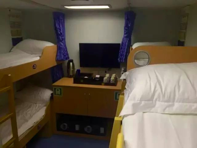 房型六:内舱六人间 ▲ 房间设施:独卫 | 电视机 |衣柜 | 茶几 | 行李架 ▲ 可入住人数:5-6人/间(内含一特价沙发铺)